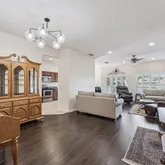 - Interior Features: Ceiling Fan(s), Eating Space In Kitchen, Kitchen/Family Room Combo, Primary Bedroom Main Floor, Solid Wood Cabinets, Split Bedroom, Thermostat, Walk-In Closet(s)