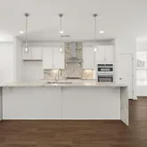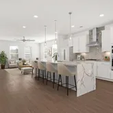 - Kitchen Features: Cabinets White, Kitchen Island, Pantry, Stone Counters, View to Family Room