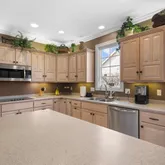 - Amenities: 1st Bdrm En Suite, Alarm System-Security, Attic Pull Down Stairs, Attic Storage, Bar, Built-In Speaker System, Built-In Bookcase, Built-in Desk, Ceiling Fan(s), Ceilings-Vaulted, Closet(s) Walk-in, Countertops-Solid Surf, Crown Molding, Deck Open, Disposal, Dryer Hook Up Electric, Eat-In Kitchen, Foyer Entry, Garage Door Opener, Irrigation System, Kitchen Island, Open Floor Plan, Range/Oven Hook Up Elec, Six Panel Doors, Wet Bar, Stand Up Shower, Main Level Bedroom Suite, Garage-Heated, Main Floor Laundry, Sump Pump, Washer Hook-Up, Custom Cabinetry