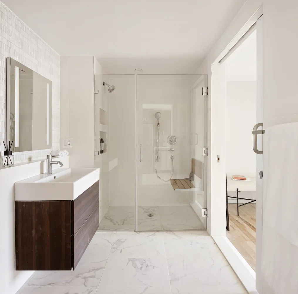 Elevate your kitchen experience with sleek and modern finishes. Custom wood cabinets and maintenance-free Glassos countertops provide a touch of sophistication, while a ceramic tile backsplash adds texture....Experience the ultimate urban retreat in this one-bedroom and one-bathroom residence. Enjoy minimalist elegance with a canvas ready for your personal touch. Each residence features Appalachian maple hardwood floors and impeccable finishes, creating a serene and spacious oasis bathed in natural light.