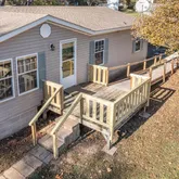 welcome guests from the front porch. A new wooden ramp provides easy access into