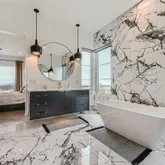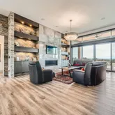 - Room Description: Floor to Ceiling Tile, Gas Fireplace, Custom floating cabinets, lighting, opens to massive deck