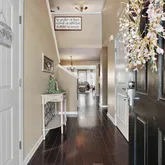 Upon entering, you'll find elegant hardwood floors throughout the main living areas and kitchen, offering a warm and inviting feel. The open-concept layout is perfect for both daily life and entertaining, with a kitchen that features ample cabinetry and sleek modern finishes.