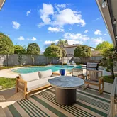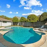 Step outside to your private backyard oasis, designed for Texas living, featuring a lagoon-style pool and spa with updated PebbleTec plaster, heater, equipment, and a newly installed pump. A separate side yard just off the kitchen offers the perfect setup for a dedicated dog run, while an additional outdoor space provides flexibility for play or entertaining.