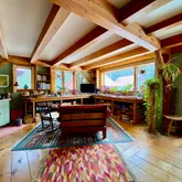 for summer sleeping and winter wood storage, and the possibility for easy reconfiguration to suit your vision if desired. The second-floor apartment with bed, bath, kitchen and living space has amazing views and deck looking out over gardens, mature forest, and yards. Exceptionally eco-conscious, this home benefits from wood heat, solar EV panels, and a high efficiency water heater. Two barns close by give additional storage space, opportunities for animals, or room for projects. Nearby public pond access on Bickford and Colcord Ponds, trail networks within walking distance, and your own 7.5-acre parcel of land leave plenty of local outdoor options throughout the year. Skiers will appreciate the 20- and 40-minute drive to King Pine and Pleasant Mountain respectively. Seemingly in a remote oasis far from the rat race, this slice of heaven is only two hours from Boston, and 30 minutes from North Conway, NH. See MLS 1649567 for additional land.