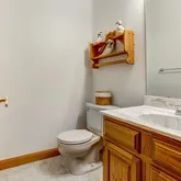 - Room Description: Half bath with large vanity off hearth room