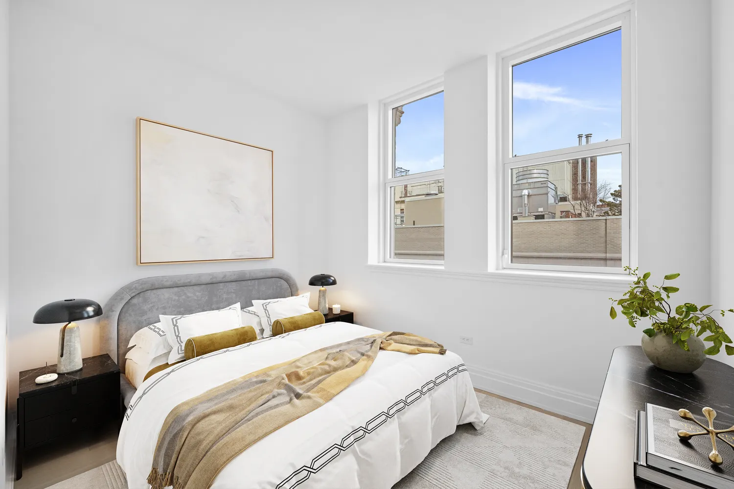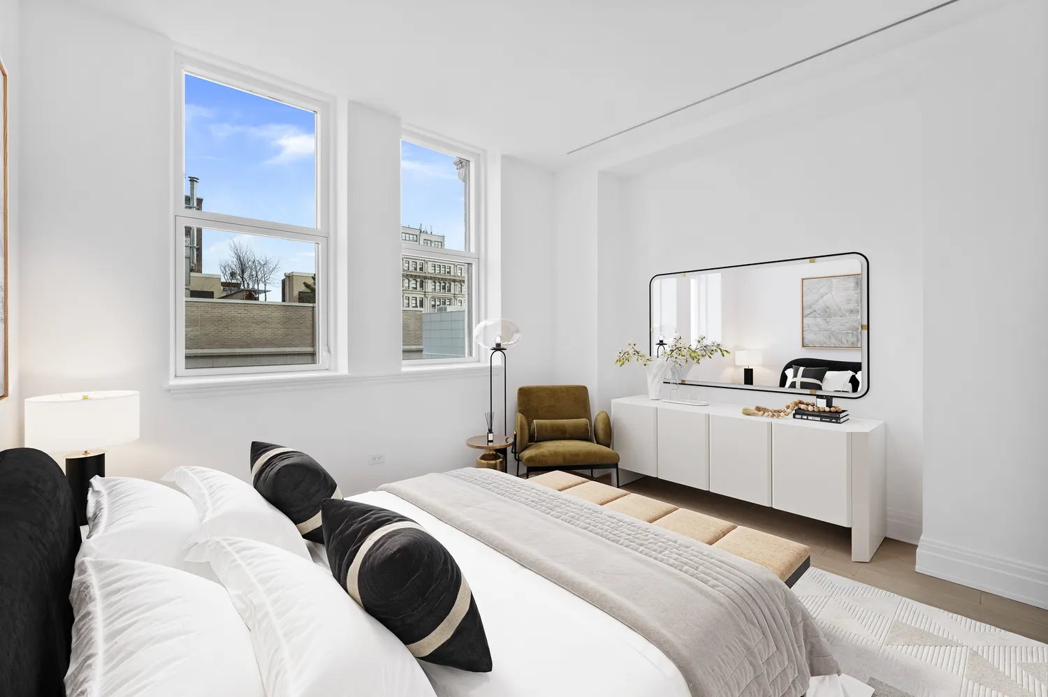 A gracious entry foyer opens into a striking great room defined by soaring scale, dramatic windows, and gallery-worthy wall space—ideal for both art and entertaining. Wide-plank blond oak floors in a chevron pattern...At the iconic 108 Leonard, historic grandeur meets refined modern living. This expansive 1,528-square-foot two-bedroom, two-and-a-half-bath residence reinterprets the building’s architectural legacy through a contemporary lens, blending classic craftsmanship with clean, thoughtful design.