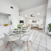 Step inside and the space opens up, welcoming you with high vaulted ceilings that let sunlight drift easily from room to room. The home unfolds across 1,502 sq. ft., where three comfortable bedrooms and two baths create a setting meant for both everyday living and entertainment. The kitchen, finished with elegant quartz countertops, becomes a natural gathering place--whether it's slow mornings with coffee or evenings spent sharing stories after a day by the water.
