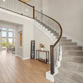 - Grand foyer with curved staircase and double-door entry