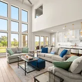 - Soaring two-story family room with dramatic wall of windows and fireplace