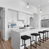 - Kitchen Features: Cabinets White, Kitchen Island, Pantry, Stone Counters, View to Family Room