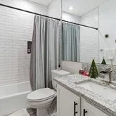 - Room Description: Full guest bathroom upstairs with a granite topped vanity and a shower/tub combo with updated subway tile backsplash