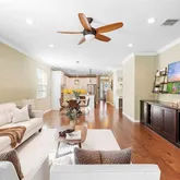- Interior Features: Built-in Features, Ceiling Fan(s), Crown Molding, Eating Space In Kitchen, Kitchen/Family Room Combo, Open Floorplan, Primary Bedroom Main Floor, Stone Counters, Thermostat, Tray Ceiling(s), Walk-In Closet(s), Window Treatments
