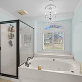 - Interior: Bookcases, Central Vacuum, Double Vanity, High Ceilings, Master On Main Level, Other, Separate Shower, Soaking Tub, Split Bedroom Plan, Two Story Foyer, Walk-In Closet(s)