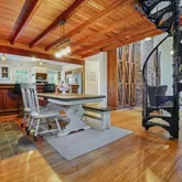 - Interior Features: Beamed Ceilings, Bookcases, Cathedral Ceiling(s), Double Vanity, Vaulted Ceiling(s)
