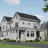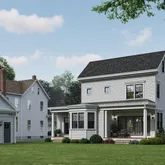 A classic covered front porch welcomes you and reflects the home’s timeless appeal. Inside, the main level is designed with intention and flow. A gracious entry opens to formal living and dining spaces, while a dedicated first-floor office provides a true work-from-home setting. A discreet powder room is tucked nearby for convenience. Toward the rear of the home, the space opens into a light-filled living area where the kitchen, breakfast area, and family room come together within the new addition. The kitchen is centered around a large island and is complemented by a butler’s pantry offering additional prep space and storage, along with a walk-in pantry. A functional mudroom entry adds everyday ease, and access to the rear porch extends living outdoors.