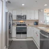 Breathtaking Views: The living area and master suite are strategically positioned overlooking the Gulf, offering unobstructed, floor-to-ceiling vistas and unforgettable sunsets. Contemporary Finishes: The main living room and master bedroom boast neutral contemporary LVP (Luxury Vinyl Plank) flooring, complemented by large neutral tile in the wet areas and hall. Gourmet Kitchen: The open-concept kitchen is a chef's delight, equipped with granite countertops and a suite of new stainless steel appliances (range, microwave, and dishwasher). Luxurious Baths: Three of the four bedrooms include their own private bathrooms, and the master bath provides a spa-like retreat with a jetted soaking tub and a separate shower. Outdoor Living: Enjoy your morning coffee or evening cocktail on the roomy balcony, the perfect spot for relaxing and taking in the beachy atmosphere.