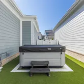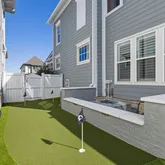 The fully redesigned side yard is built for both ease and entertaining, featuring low-maintenance turf for year-round beauty, a 3-hole putting green, and a designated space with a new jacuzzi, remote motorized screen on the back porch making it true indoor/outdoor living. Can leave back door open and feel the breeze come in — creating the perfect outdoor retreat.