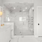 - Primary Bath: Double Sinks, Marble, Floor - Porcelain, Steam Shower