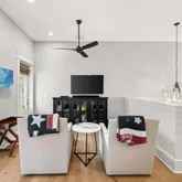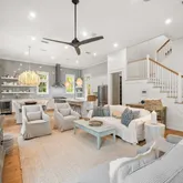 Outdoor living is effortless! Enjoy morning coffee on the screened porch off the kitchen, relax under the stars in the outdoor sitting area, or retreat to the private upstairs porch off the master suite. Practical features include a golf cart garage and generous storage for beach and bike gear. Residents also have access to two community pools for added leisure and convenience.