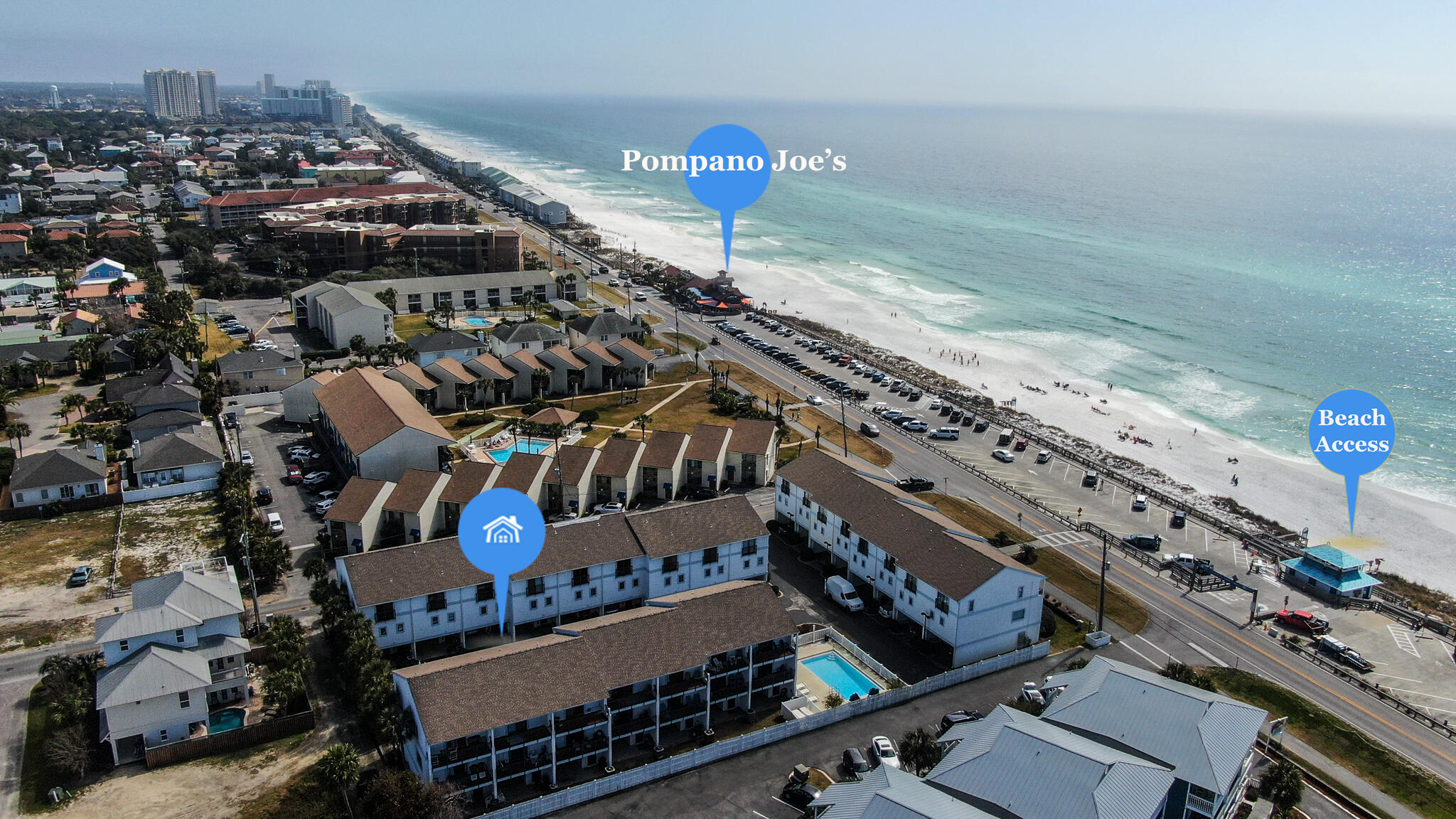 - Directions: Highway 98 to South Holiday Road. Turn Right at the stop sign. Just past Pompano Joe's Restaurant Turn right on driftwood rd. Immediately turn Left into Costa vista. Unit 22 will be on the left.