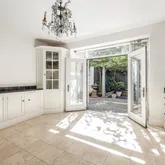 Opening onto a private patio and garden, the expansive eat-in chef’s kitchen is equipped with a suite of appliances by Viking, Sub-Zero, and Miele, as well as an abundance of storage space. Adjacent to the kitchen are staff quarters, including a full bathroom and a laundry room with washer and dryer, rounding out the garden level. Just beyond the laundry area is a small back room—originally designed as a staff room and later utilized as a private home gym—offering additional flexibility and function to the space. Ii. Parlor Level