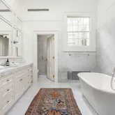 Occupying the third floor and overlooking the park, the primary suite features a separate sitting room, an expansive dressing room/walk-in closet, and a sumptuous primary bath with dual sinks, a separate soaking tub, and a stall shower. Two additional bedrooms with garden views and ample closet space share a full bathroom, completing the third floor. Residences Two & Three