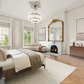 The grand staircase ushers you to the parlor level, featuring stunning 14-foot ceiling heights. Wrapped in Louis XIV wood paneling with gorgeous inlaid wood flooring, the breathtaking living room boasts an original wood-burning fireplace and floor-to-ceiling windows overlooking the park. The dramatic dining room offers another wood-burning fireplace, an adjacent butler’s pantry, and garden views through exquisite French doors. Iii. Private Quarters
