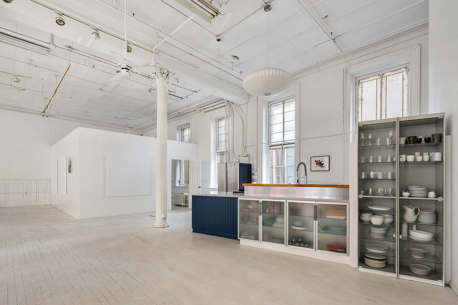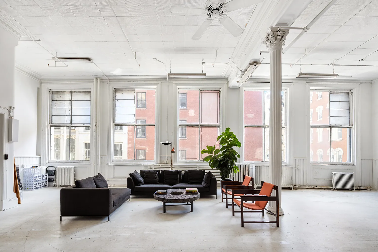 From there you are immediately greeted by soaring 14 foot ceilings and 6 original cast iron columns. To your right, discover 5 oversized Eastern facing windows and to your left, 6 more facing West.