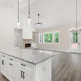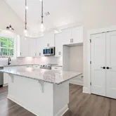 - Kitchen Features: Cabinets White, Pantry, Stone Counters, View to Family Room