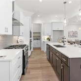 - Kitchen Features: Breakfast Bar, Cabinets White, Kitchen Island, Pantry, Solid Surface Counters, View to Family Room