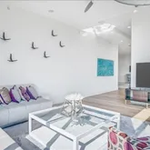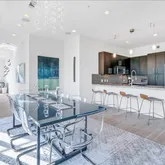 The home has been thoughtfully updated with numerous upgrades, including motorized uv window shades, brand new white oak plank flooring and stunning dining room chandelier.