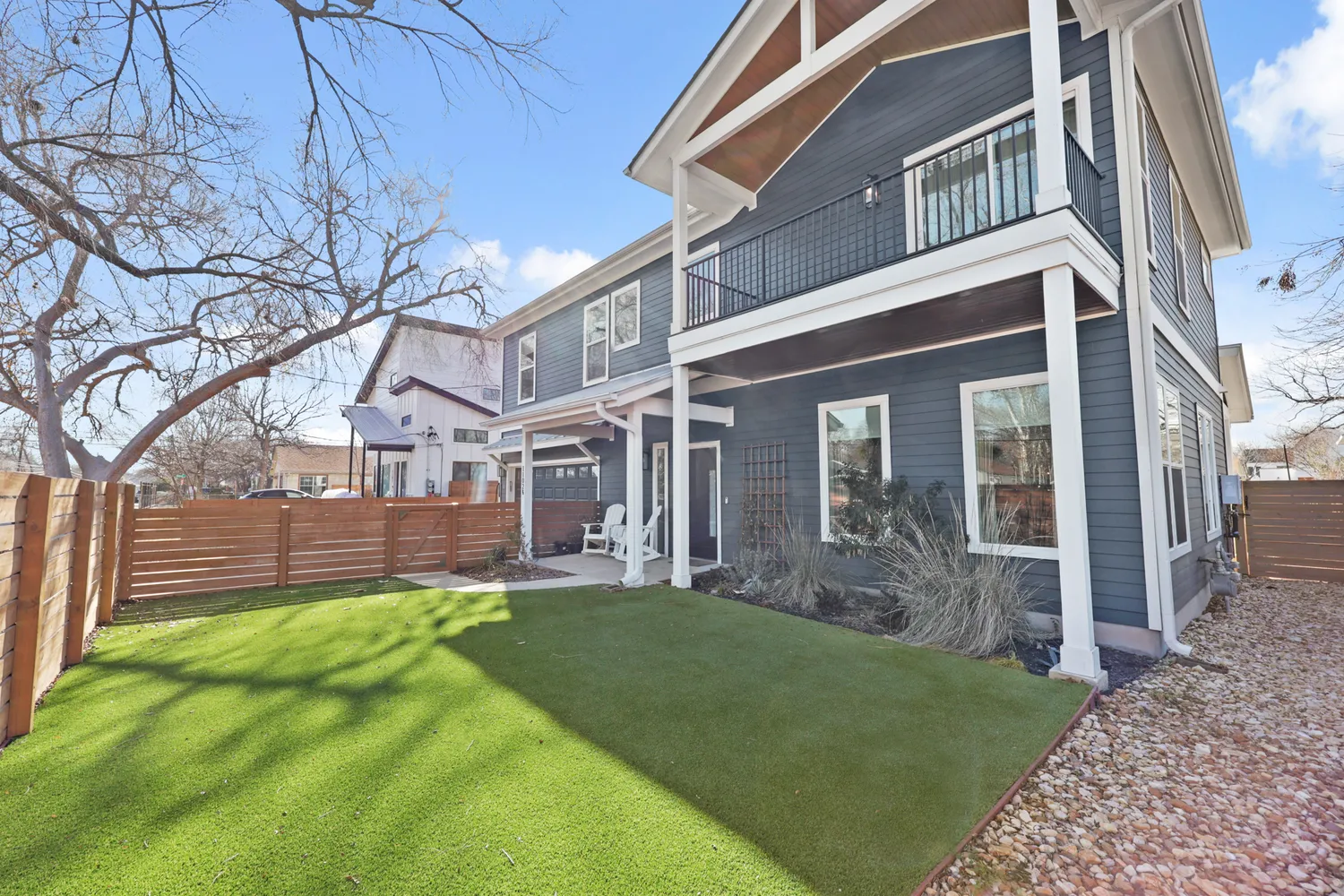 The open-concept layout features Texas-sized ceilings throughout further embracing the natural light. Three bedrooms, two and a half baths, and a healthy two-car attached garage offer space that feels intentional and easy. The primary suite opens to a private balcony—perfect for coffee at sunrise or winding down under the stars.