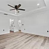 - Interior Features: 1st Floor Master Bedroom, Entrance Foyer, Family Room, Ceiling Fan(s), Quartz Counter Tops, Kitchen Island, Solid Surface Counter Top, Tray Ceiling(s), Walk-In Closet(s), Smooth Ceilings