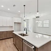 - Public Remarks: The Westberry blends smart design, low-maintenance living, and modern style - perfect for busy professionals who want to love where they live. Located in the last single-family home community in e-Town, this two-story home offers 3 bedrooms and 2.5 bathrooms in a thoughtful, open layout made for both downtime and entertaining. The first floor features a spacious family and dining area that flows into a gourmet kitchen with dual-toned cabinetry in white linen and warm wood, quartz countertops, a gas cooktop, and a large island with plenty of storage. Durable LVP flooring runs throughout the gathering spaces, while black hardware and plumbing fixtures give a clean, modern edge. Just off the garage, a smart drop zone creates the perfect spot for bags, keys, or a dedicated dog station. A powder bath and covered lanai complete the first floor, offering both convenience and outdoor relaxation without the upkeep. Upstairs, all three bedrooms are privately tucked away,
