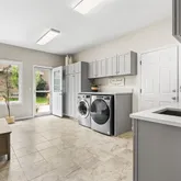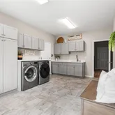 - Room Description: extra large laundry/mudroom, back door entrance, garage entrance, utility sink, built in closets, and cabinets, counter spaces