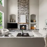 - Room Description: large open great room, new floor to ceiling stone fire place, tall windows, views, high ceilings,
