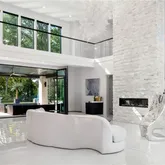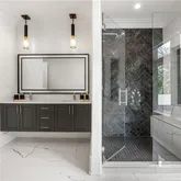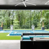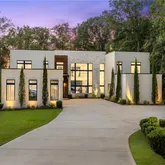 Upon entry a soaring 20-foot ceiling crowns the light-filled great room, anchored by a Chihuly-inspired hand-blown glass chandelier and a sleek linear...Gated, private, and perfectly positioned on over an acre in the heart of Buckhead, this modern estate—completed in May 2021 by Bella Fine Homes—pairs elevated architecture with resort-caliber outdoor living. Brazilian Ipe wood details married with a marble facade, expansive glass walls, and black glass garage doors create a striking first impression.