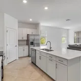 - Interior Features: Ceiling Fan(s), Coffered Ceiling(s), High Ceilings, Kitchen/Family Room Combo, Open Floorplan, Solid Surface Counters, Solid Wood Cabinets, Split Bedroom