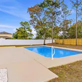 a private pool and mostly vinyl fencing, with a wood fence along the back for added privacy. Additional upgrades include a new front door, new washer and dryer, and updated finishes
