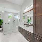 The main-level primary suite is a private oasis, carefully designed for serenity and style, offering mesmerizing water views and direct access to the poolside lanai. Its spa-inspired bath rivals those found in the world’s most exclusive retreats, featuring luxurious finishes, spacious dual vanities, and a walk-in shower with exquisite tile detailing. Additional highlights of comfort include a private elevator granting seamless access to each floor and thoughtfully designed guest accommodations that deliver unparalleled privacy and sophistication.