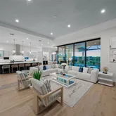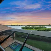 From the moment you enter through the gates and travel the elongated paver drive framed by lush tropical landscaping and towering palms, you’ll sense you've arrived someplace extraordinary. Inside, the residence reveals breathtaking bayfront and Intracoastal panoramas from nearly every vantage point. Rich wood plank flooring, polished tile, elevated tray ceilings, and striking eight-foot doorways evoke a sense of grandeur typically reserved for elite luxury resorts. Corner pocket doors vanish effortlessly, blending indoor elegance with expansive outdoor spaces and framing endless vistas of shimmering water.