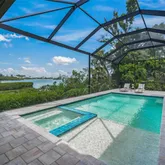 Outdoors, paradise awaits. The resort-style heated pool and spa overlook breathtaking water views, enhanced by a custom-designed summer kitchen and extensive lanai—perfect for sunset soirées or elegant alfresco dining beneath the stars. A private dock equipped with a 10,000-pound boat lift invites exploration of Florida’s stunning waterways, while the expansive grounds provide ample space to add a guest house or casita, further enhancing the estate’s exclusive appeal. This home also comes with a new construction home warranty that lasts until November 2026!