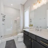 Upstairs, the luxurious master suite offers a private retreat that you’ll never want to leave. A cozy fireplace, expansive sitting area, and his-and-hers closets that are both enormous and custom-designed create an exceptional space. The spa-like master bath features separate water closets, a large soaking tub, and a walk-in shower, providing a serene atmosphere for relaxation.