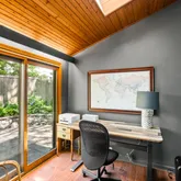 The main floor also includes a primary bedroom and full bathroom, offering the convenience of one-level living. A washer/dryer is conveniently located just outside the primary bedroom. A private office with direct access to the backyard completes the main level, providing a serene space for work or study.