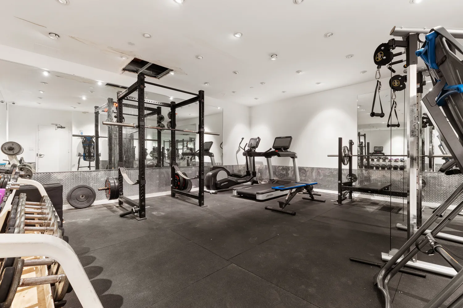 The building offers a Carson Remote Doorman service that ensures the security and convenience of residents, with 24/7 live operators. This service can be accessed through a mobile app and is connected to the package room for seamless deliveries even when you're not present. Additionally, there is a small gym located on the lower level of the building that is accessible to owners around the clock. For further fitness options, residents can take advantage of the Bedford YMCA across the street, which provides fitness classes, equipment, indoor pool, and saunas.