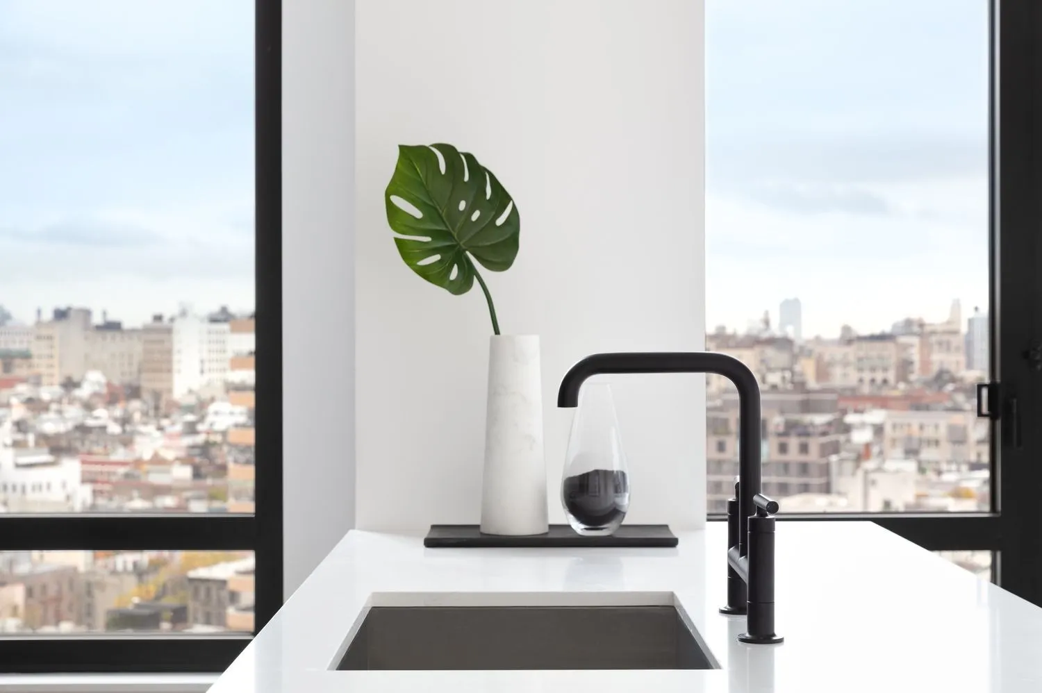 18A is a stunning 2 bed/2 bath with Eastern, Northern and Southern exposures. The apartment features stainless steel Bosch appliances, insinkerator, Kohler fixtures, Calcutta gold quartz countertops, backsplash and custom crafted Italian cabinetry. Bathrooms include honed, diamond white cultured marble vanities; Casanova cabinetry; and Carrara marble flooring. Residences also come with Latch smart-lock apartment entry systems, Nest thermostats, Bosch washer and dryer, white oak flooring, 9-11 foot ceilings and solar shades.