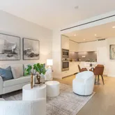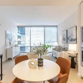 This one bedroom residence features floor to ceiling glass window walls, a Euro chic kitchen with natural gas cooktop, and 5” white oak flooring throughout. Relax in your living room, and enjoy the serene setting of the Oehme Van Sweden landscaped courtyard. One assigned garage parking space (P2-95) and one assigned storage space (#8) are included.