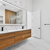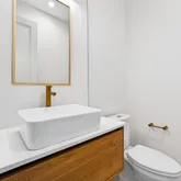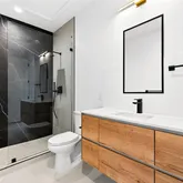 The carefully crafted C model is our top of the line product containing many luxury features. On the first floor as you walk in you are greeted to a welcoming sitting area along with 2 bedrooms and a shared bathroom. Taking the private elevator up to the second floor contains the main living and dining areas along with the kitchen containing a large waterfall island with high end Bosch stainless steel appliances. Throughout the house you will find nothing but engineered hardwood flooring, with absolutely 0 carpet. Going up to the third floor, you will find the massive flex room which could be used as your 4th bedroom, media room, game room, or however you want to use it.