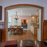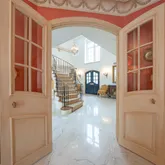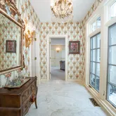The formal living room is highlighted by a dramatic two-story ceiling and expansive floor-to-ceiling windows. A beautifully appointed office features custom wood built-in bookshelves and a fireplace with a striking black marble surround....Situated in the heart of Gladwyne, this distinguished residence offers timeless architectural elegance and thoughtfully curated indoor and outdoor living spaces. A grand double-door entry opens to a marble-tiled foyer with soaring ceilings and a sweeping staircase.